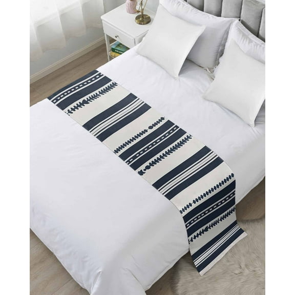 Bed Runner Scarf for Twin Size Bed, Navy Blue Striped Beds Scarf Throws for Foot of Bedding, Farmhouse Geometric Stripe Decorative Beds Runners for Bedroom Guestroom, 71"x20" From $29.99