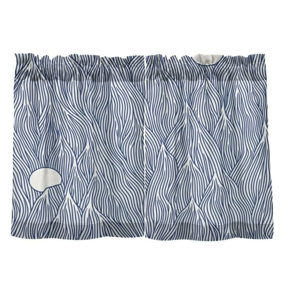 Navy Blue Wave Pattern 27"x24" Linen Look Cafe Curtain Set with Privacy and UV Protection From $19.99