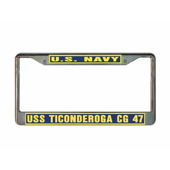 current price $17.99USS TICONDEROGA CG 47 License Plate Frame Gold Chrome Metal Military Navy USN Car Truck RV F001