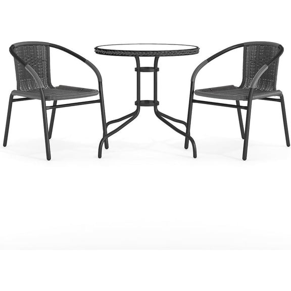 Costway 3 PCS Metal Bistro Set Round Table & 2 Folding Chairs with Rattan-Like Pattern Black$124.99current price $124.99Outsunny 3 Pieces Outdoor Bistro Set, Patio Furniture with Stackable Chairs and Glass Table, High Back Small Patio Set for Balcony, Porch, Beige