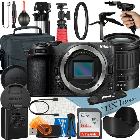current price $1,109.99Nikon Z30 Mirrorless Camera Bundle with NIKKOR Z 24-70mm f/4 S Lens + 64GB SanDisk Card + Case + Tripod + ZeeTech Accessory (International Version)