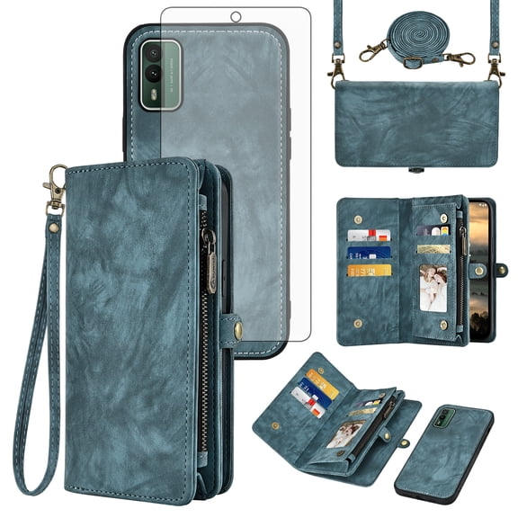 Asuwish Phone Case for Nokia XR21 5G Zipper Wallet Detachable Purse Mobile Cell Cover with Tempered Glass Screen Protector Crossbody Lanyard Strap Flip Card Holder Slot None Women Men Girls Blue From $26.99