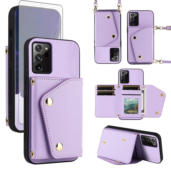 Furiet Wallet Case for Samsung Galaxy Note 20 Ultra 5G & Tempered Glass Screen Protector Slim Purse Shoulder Strap Phone Cover for Note20 Plus Notes 20Ultra Note20+ U + 20+ Twenty Not S20 Purple From $13.59 Was $16.99