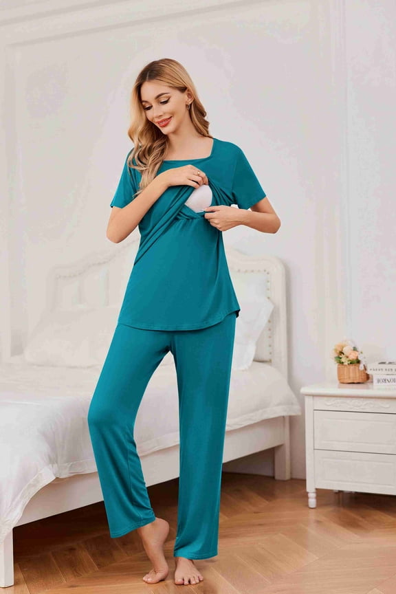 breaise Women's Maternity Nursing Pajamas Set Breastfeeding Sleepwear Short Sleeve Top & Shorts Pregnancy PJS Postpartum Pajamas Breastfeeding Pregnancy Clothes M-3XL$16.96current price $16.96FAMTKT Women's Maternity Nursing Pajamas for Hospital Short Sleeve Baseball Pregnancy Breastfeeding Sleepwear Set, Maternity Pajamas & Loungewear( XL, Purple )