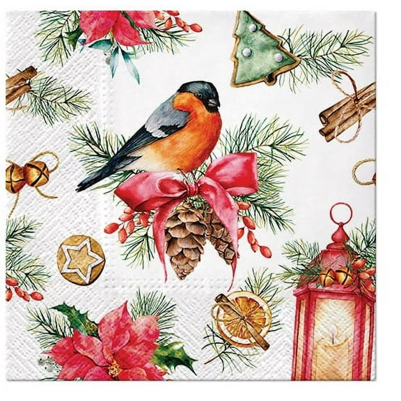 current price $18.68Winter Napkins BULLFINCH WITH LAMPION Paper Lunch Napkins 40pcs Paper Napkins Decorative Christmas Paper Napkins for Decoupage