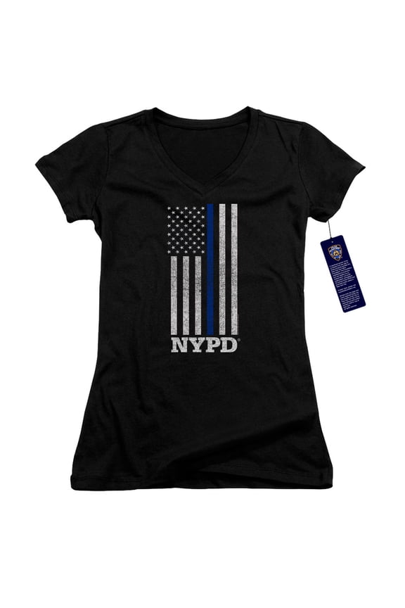 New York City Thin Blue Line Youth 18/1 T-Shirt BlackNew York City - Thin Blue Line - Juniors Cap Sleeve V-Neck Shirt - Medium