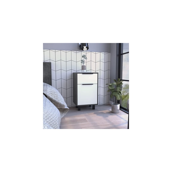 Clearance HomeStock Artisanal Abode Nightstand Superior Top One Open Shelf One Drawer Four Legs Finish Smokey Oak White Material Laminate 24.8" x 13.78" x 15.75" $71.99 Was $108.21