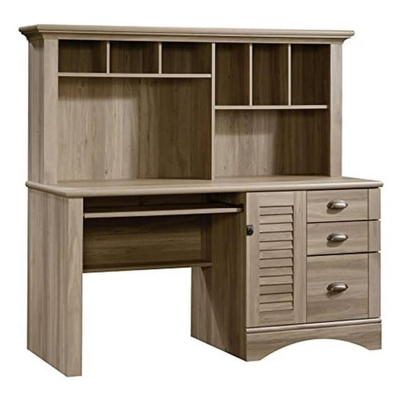 Sauder Harbor View Computer Desk With Hutch, Salt Oak Finish