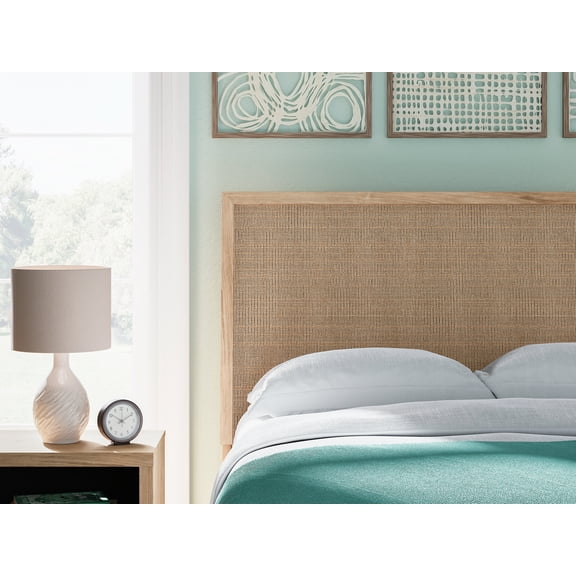 Signature Design by Ashley Cielden Full Panel Headboard, Two-Tone Brown with Cane-Look Panel