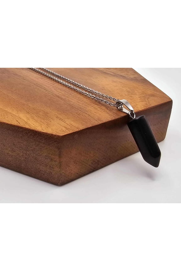 Elegant Black Obsidian Point Necklace - Silver Tone Perfect gift5Pcs 60-70mm Natural Black Obsidian Quartz Crystal Point Wand Healing Obelisk $22.99