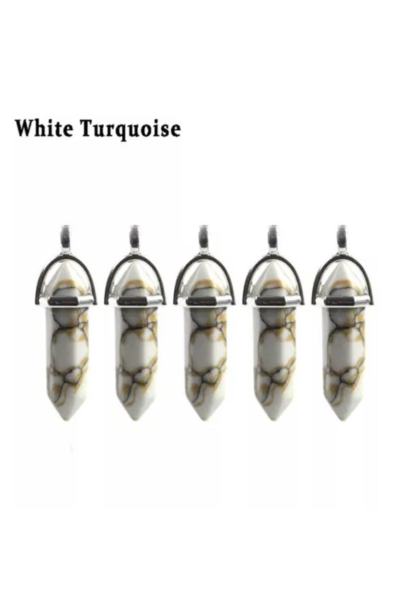 5PCS Natural Gemstone Hexagonal Point Chakra Crystal Healing Stone Pendant-White TurquoiseElegant Black Obsidian Point Necklace - Silver Tone Perfect gift $10.99