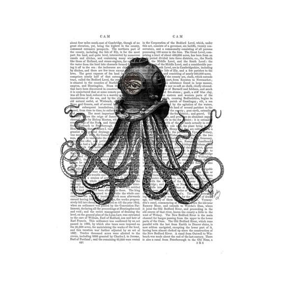 Great Big Canvas "Octopus Nautical Hat" by Fab Funky White Brown coastal Wrapped Canvas Print Wall Artwork From $29.99
