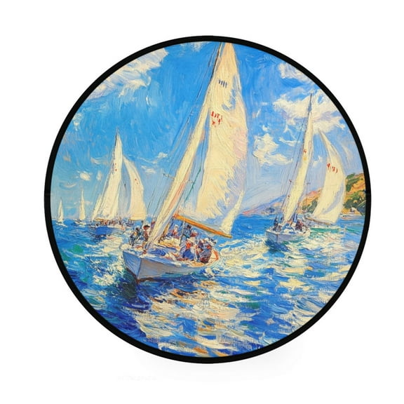 BZSMCE Round Decorative Floor Mat Ocean Breeze Regatta Pattern 36.2IN $26.99