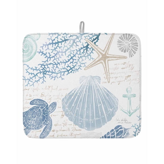 Blue Coastal Ocean Beach Themed Dish Drying Mat, Sea Turtle Starfish Shell Absorbent Dish Drying Matt Pad for Kitchen Countertops,Sinks,Dish Drainer Racks, Small 16x18inx1Pc, From $16.99