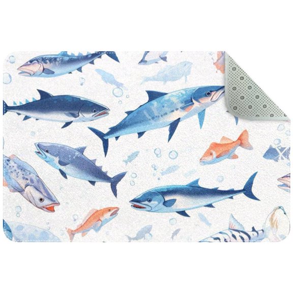 Ocean Fish Seamless Pattern Small Area Rug, Non-Slip Door Mat Indoor Floor Mat, Washable Kitchen Rug Entrance Door Mat for Bedroom Living Room