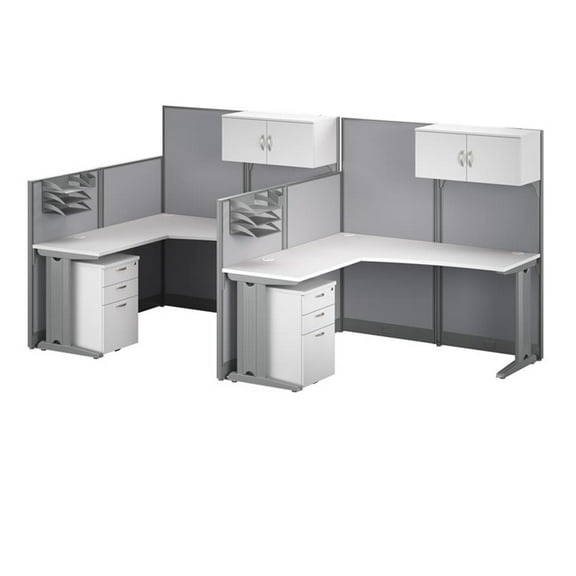 current price $3,947.55Office in an Hour 2 Person L Cubicle Desk Set in Pure White - Engineered Wood