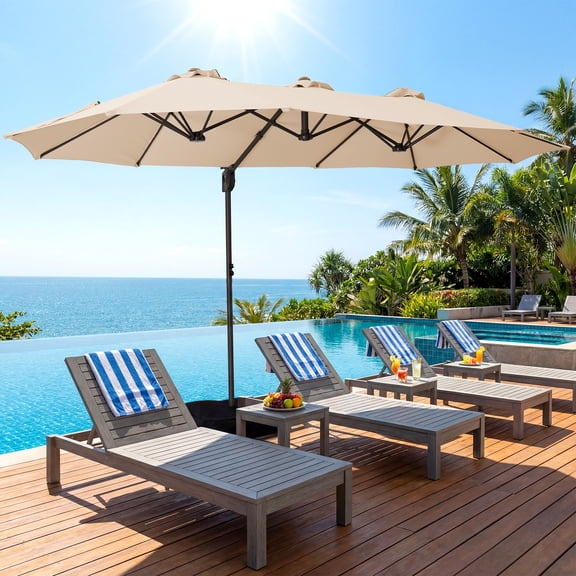 AECOJOY 15 Ft Patio Double Sided Umbrella Large Outdoor Umbrella - Beige$99.99current price $99.999ft Patio Umbrella with Tilt & Crank - Outdoor Market Umbrella - Aluminum Pole - Champagne Finish - Durable Shade