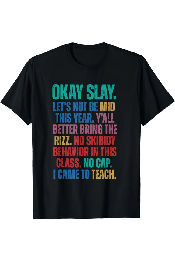 Okey Slay Let's Not To Be Mid Gen A Slang Teacher Unisex T-Shirt, up to Size 5XL From $17.50
