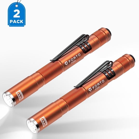 FORTO LED Pen Light, 200 Lumens Pocket Flashlight, IP67 Waterproof, AAA Batteries, Orange 2 Packs From $9.99