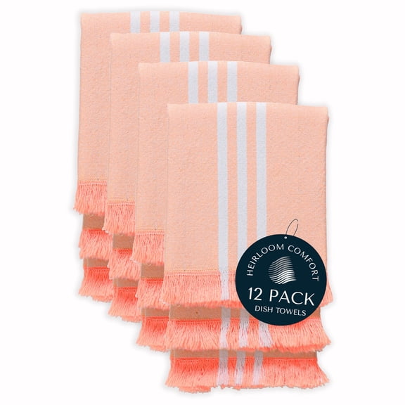 HEIRLOOM COMFORT Orange Turkish Kitchen Towels 16x26 Inch, 12 Pack, 100% Cotton, Ultra Absorbent, Soft, Fast Dry, Machine Washable, Dish Towel with Tassels for Drying Dishes, Cleaning, Everyday Use From $14.99