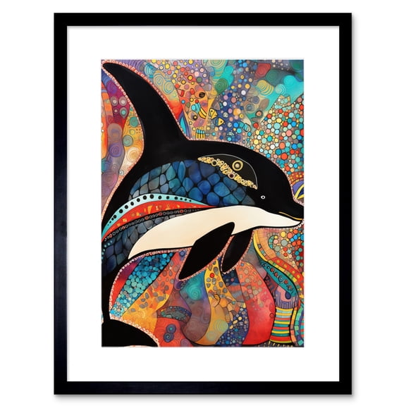 Available in additional 4 optionsOrca With Decorative Motifs Folk Art Artwork Framed Print Wall Art 9X7 Inch