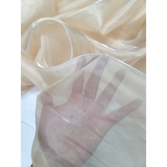 current price $42.36Crystal Organza Organdy Champagne Beige Fabric Sold By The Yard For Dress Silky