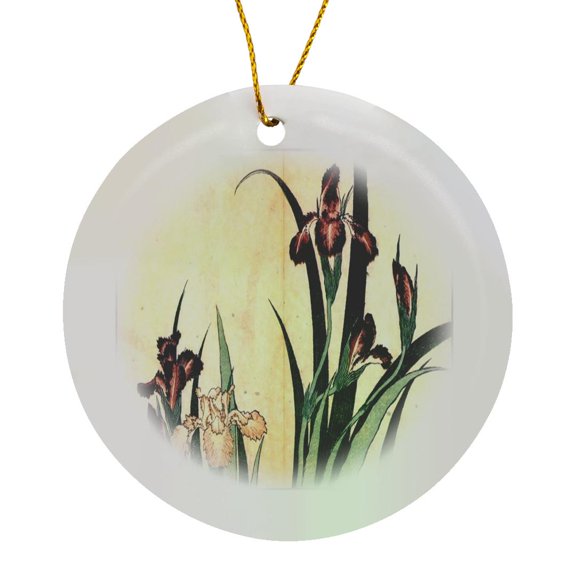 Available in additional 2 options3drose, Image of Painting of Oriental Irises, Circle Porcelain Ornament