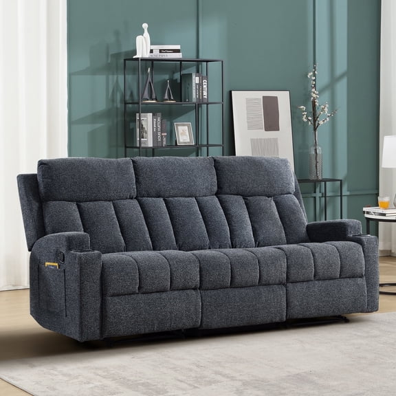Bonzy Home Reclining Sofa for Living Room, Extra Wide Modern Overstuffed 3 Seat Recliner Manual Sofa Chair, Breathable Soft Fabric and Padded Seat,Navy From $179.99