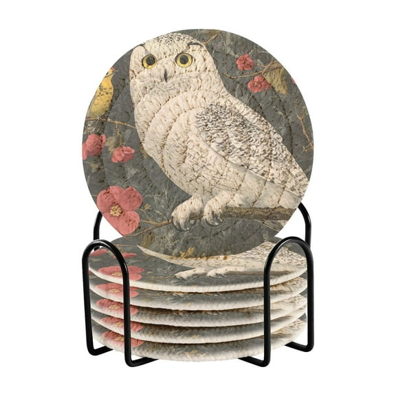 current price $15.99WOBOGO Snowy Owl Coil Coasters Set of 6 Minimalist Cotton Woven 3.94 inch Non-Slip Insulated and Absorbent Home Accessories.