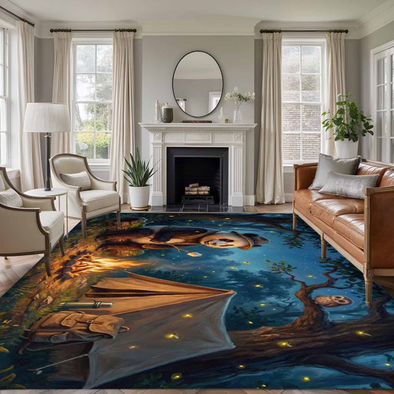 Non-Slip Rug Pad Rugs Camping Bonfire Panda Rectangle Area Rugs 5x7Ft Soft Carpet Pads for Living Room Kids Room, Nighttime Firefly Owl From $31.57