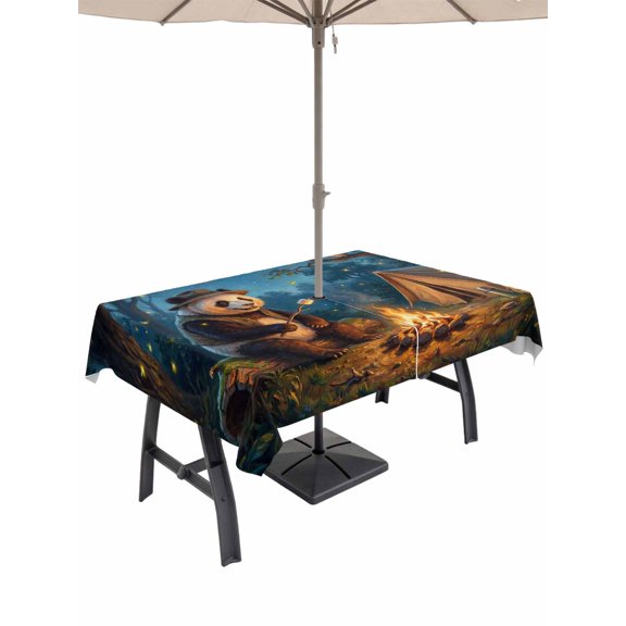 Outdoor Tablecloth with Umbrella Hole, Camping Bonfire Panda Zippered Table Cloth for Rectangle Tables, Nighttime Firefly Owl Washable Waterproof Tablecloths for Picnic Patio Garden From $29.02