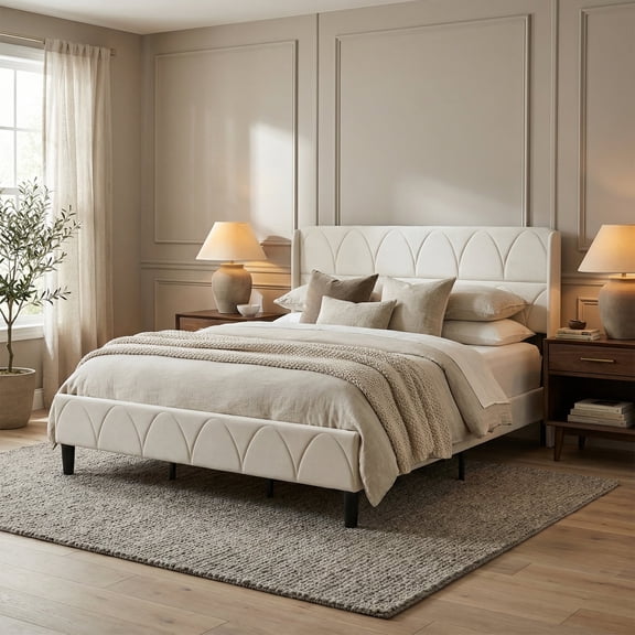 Topeakmart Upholstered Platform Queen Bed with Headboard, Ivory From $129.99