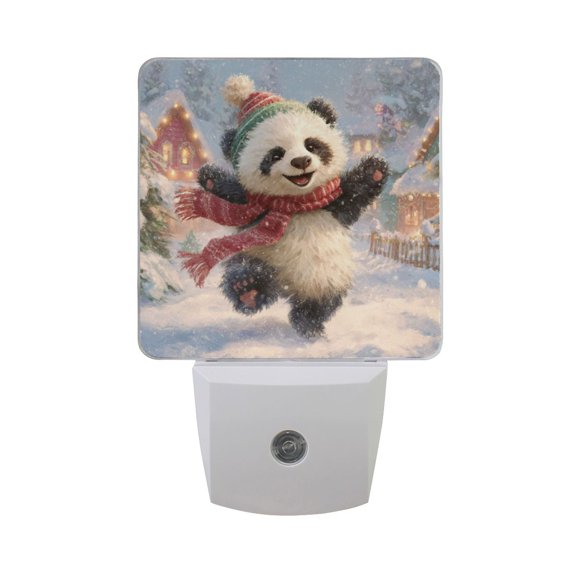 current price $16.99Cute Panda Celebrate Christmas in Snow LED Night Light Sensor Lamp Plug-in Adjustable Brightness 2 Pack