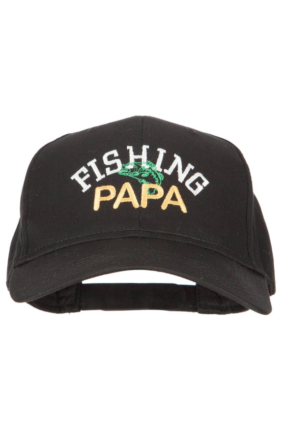 Fishing Papa Embroidered Solid Cotton Pro Style Cap - Black OSFMPapa Hat, Dad Hat Print Baseball Cap Adjustable Strap for Running Workouts and Outdoor Activities All Seasons,Made In USA,Adult One Size Fits All
