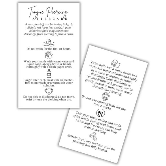current price $9.99Tongue Piercing Aftercare Instruction Cards 50 pk 2x3.5 Piercing Studio Beginners Kit Business Saline Spray Cleaner for Clients Ear, Nose Modern Simple