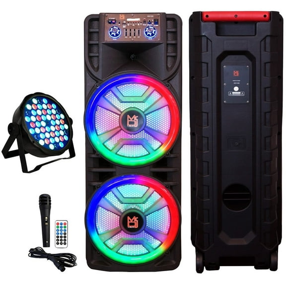 current price $259.99MR DJ NEWYORK+ 12" X 2 Rechargeable Portable Bluetooth Karaoke Speaker with Party Flame Lights Microphone TWS USB FM Radio + 18-LED Slim Par Wash DJ Light