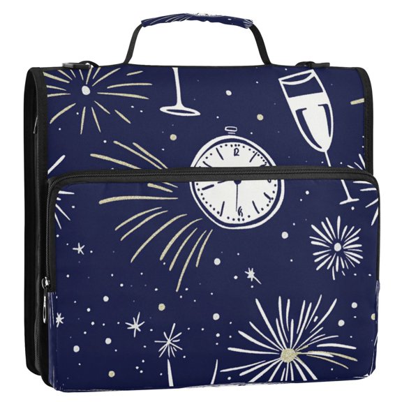 Party Simple Fireworks 12.4x10.6in PVC Round Ring Binder, D-Ring 3-Hole, Metal Clip, 200 Sheets