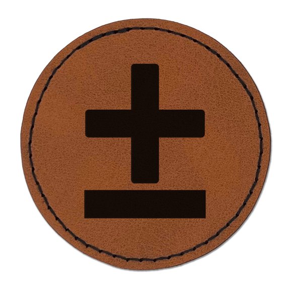 Plus or Minus Range of Values Math Symbol 2.5" Faux Leather Round Engraved Iron-On Patch - Brown Was $14.99
