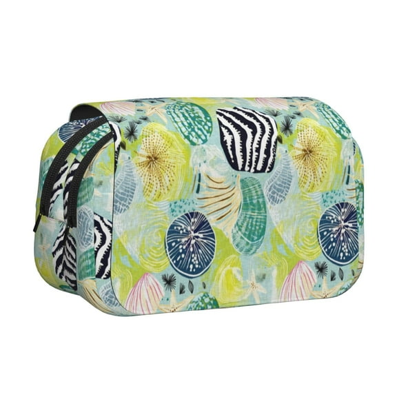 current price $21.99Rateoe Algae Corals and Seashells Pattern Double Clamshell Pen Case, Storage Organizer with Two Zipper Compartments Holds Up to 50 Pencils & Pens