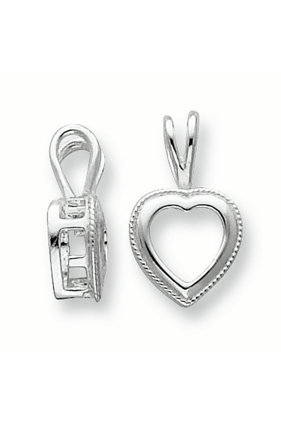 0.50 CTW Lab Grown Diamond Three Stone Snow Hidden Bail Pendant in 14K White GoldSterling Silver Heart 10.0mm Rope Frame Back Set Fixed Bail Pendant Setting $39.20