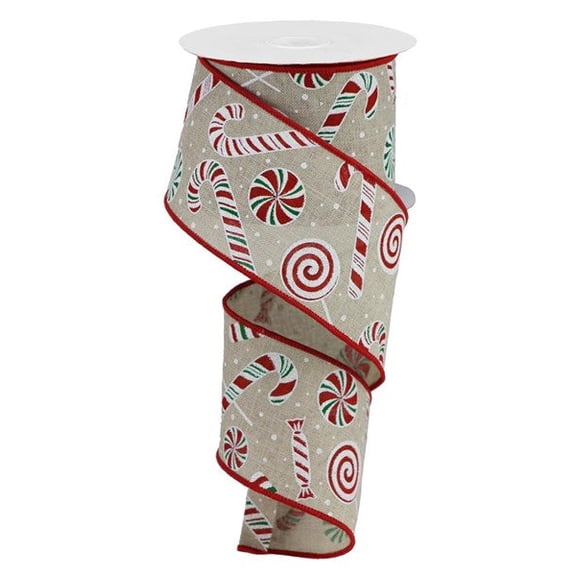 Candy Canes & Peppermints Wired Edge Ribbon, Light Natural Red Green - 2.5 Inches x Christmas, 10 Yards $13.98