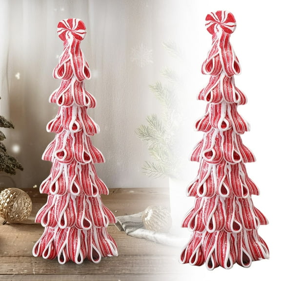 Christmas Polymer Candy Tree Glossy Red White Peppermint Swirl Holiday Centerpiece Vintage Modern Compact Scratch Resistant Durable Mantel Shelf Warm Decor 1pc