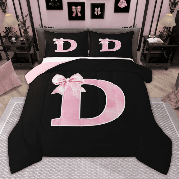 jejeloiu Personalized Gifts Bowtie Bedding Comforter Set,Letter C Twin Comforter Sets,Pink Black Bow Bowknot Bedding Set,Lightweight Room Decoration Reversible,2-Piece From $37.99