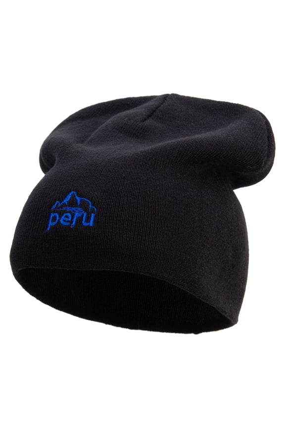 Peru Landscape Sign Embroidered Big Size Superior Cotton Short Knit Beanie - Black XL-3XL From $32.49