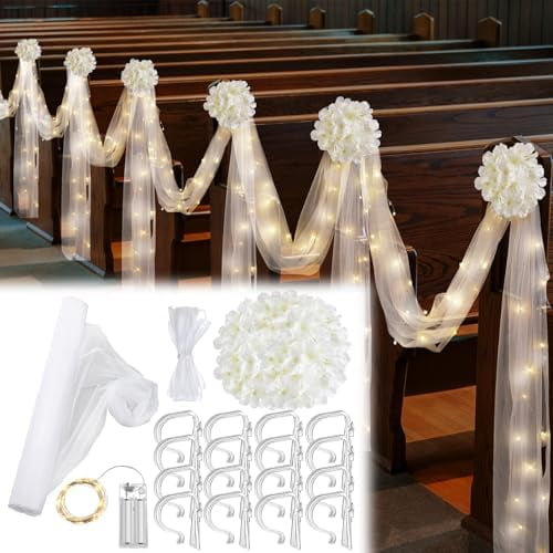 37 Pcs Church Pew Wedding Decorations with Light White Fabric Tulle Silk Artificial Flower Pew Clips Wedding Aisle Decor for Party Church Ceremony Banquet Reception$$Electronics Accessories $67.98
