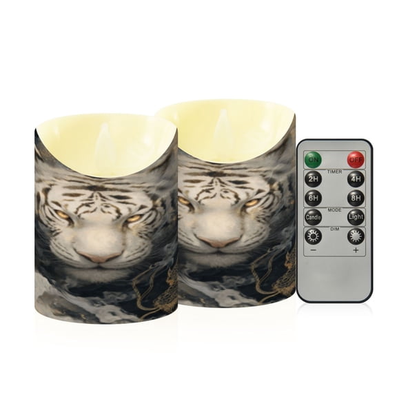 Flameless Themed LED Candles Decorative With Phantom White Tiger Pattern From $18.47
