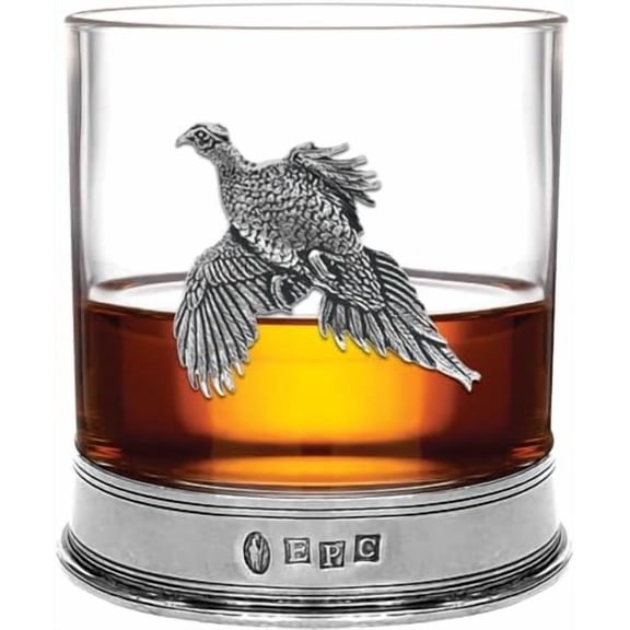 English Pewter Company 11oz Old Fashioned Whisky Rocks Glass with Pewter Base and Pheasant Motif [PHS104] $99.98
