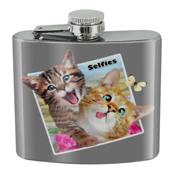 current price $12.99Kittens Selfie Picture Stainless Steel 5oz Hip Drink Kidney Flask