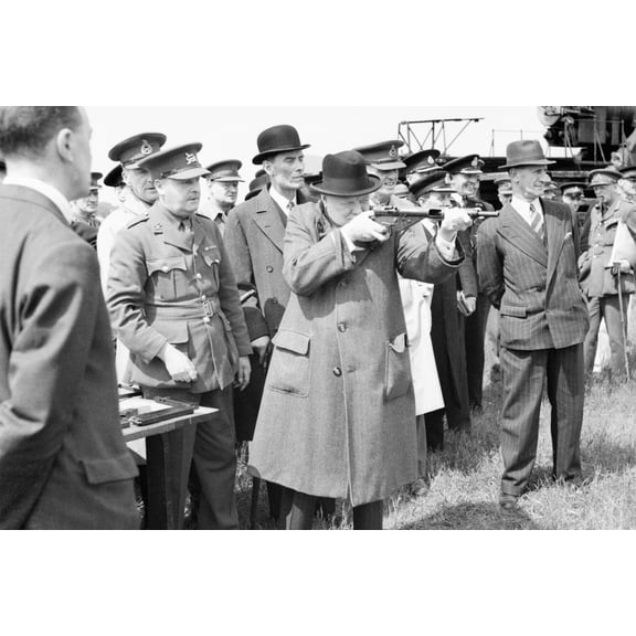 current price $52.9524x36 gallery poster, Winston Churchill takes aim with a Sten sub-machine gun in June 1941