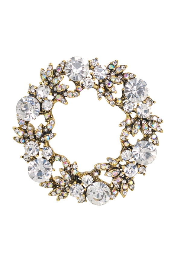 Flower Wreath Clear, Crystal Rhinestone Wedding Holiday Brooch Pin, Antique Gold Tone14 out of 5 Stars. 1 reviews